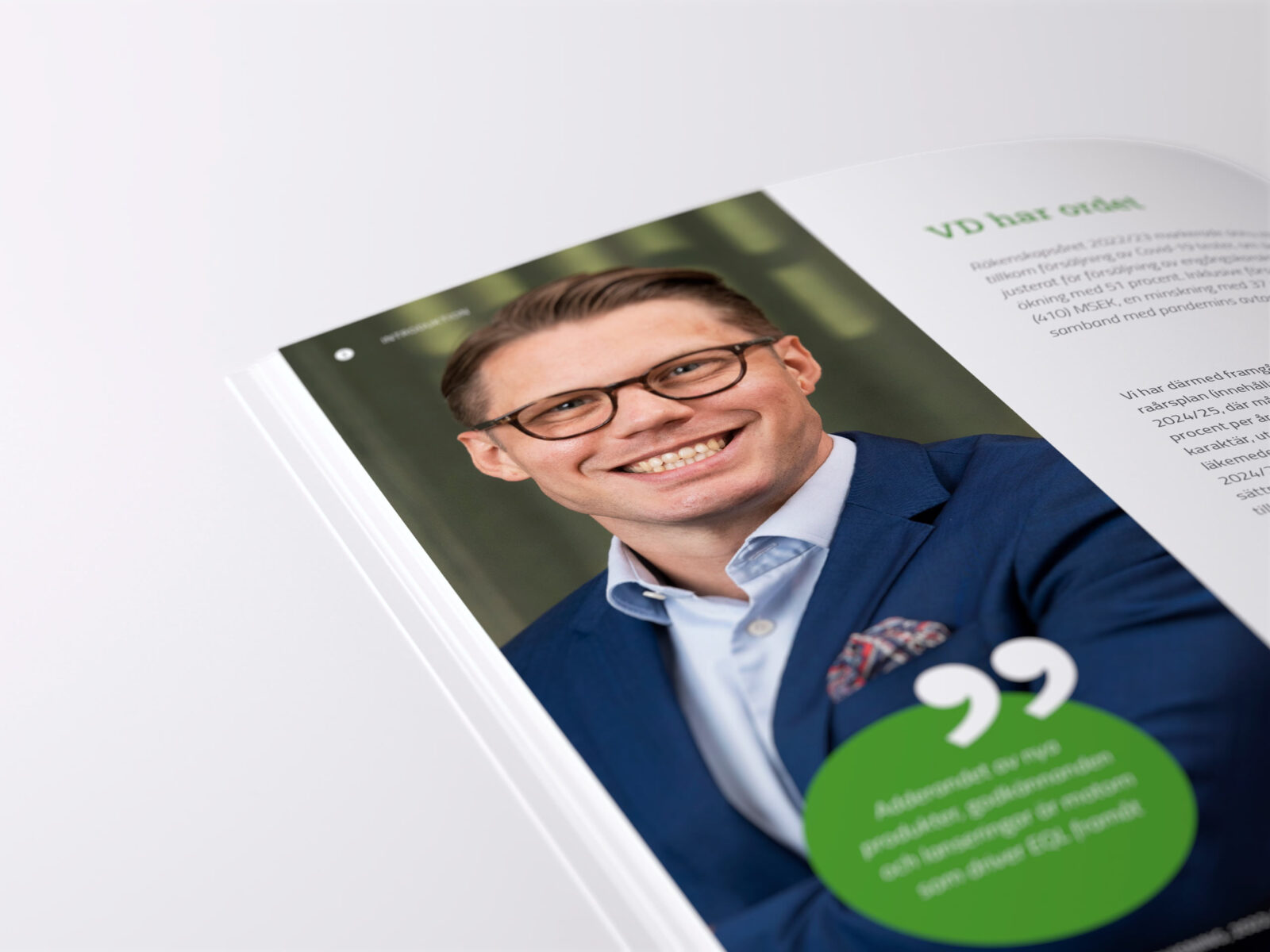 Vi har producerat EQLs årsredovisning sedan räkenskapsåret 2022-2023. Uppdraget var att ge aktieägarna en tydligare bild av bolaget och året som gått. Vi tog fram en strategi för innehåll och form och gav därefter årsredovisningen en uppdaterad layout med nya illustrationer. Innehållet uppdaterades också med nya avsnitt som aktiesida och medarbetaravsnitt med medarbetarintervju. Vid senare års produktion har en utförlig hållbarhetsredovisning tillkommit som ska klara de nya CSRD-kraven samt en digitalanpassning.