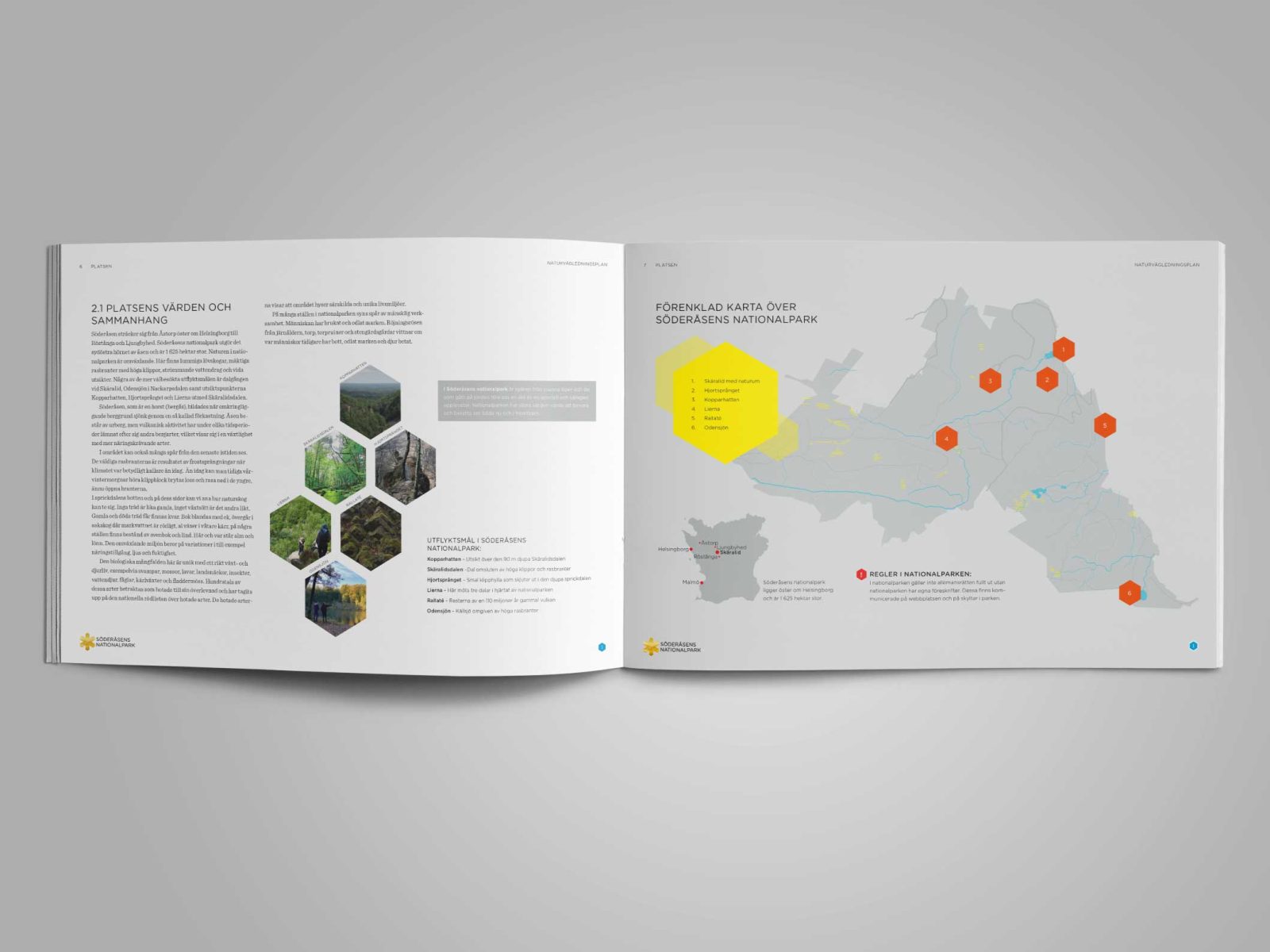 Arbetet inleddes med en workshop där fakta, målgrupper, syfte och parkens uppdrag gicks igenom. Ett tiotal personas som representerade typiska besökare i området togs fram, och utifrån dessa anpassades sedan kommunikationen för skilda natur- och kulturvärden i parken. Efter genomgång och sammanfattning tog Clavis fram en naturvägledningsplan som tjänar som ett dokument för att hålla samman naturvägledningen i parken.